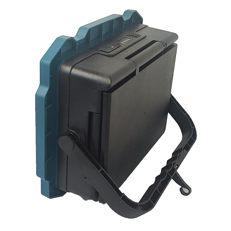 نور افکن و چراغ کاری 100 وات با داشتن پایه متحرک قابل تنظیم تا 180 درجه که پایه ی این چراغ کاری را می توان به عنوان دسته نیز به کار برد. زاویه تابش نور افکن و چراغ کاری 100 وات به 120 درجه می رسد.