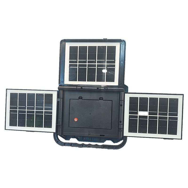 پشت محصول دارای 3 صفحه خورشیدی تاشونده بوده و با نور خورشیدی باتری آن را شارژ می کند. شش باتری چراغ در پشت محصول قرار داده شده و به راحتی قابل مشاهده و تعویض میباشد.