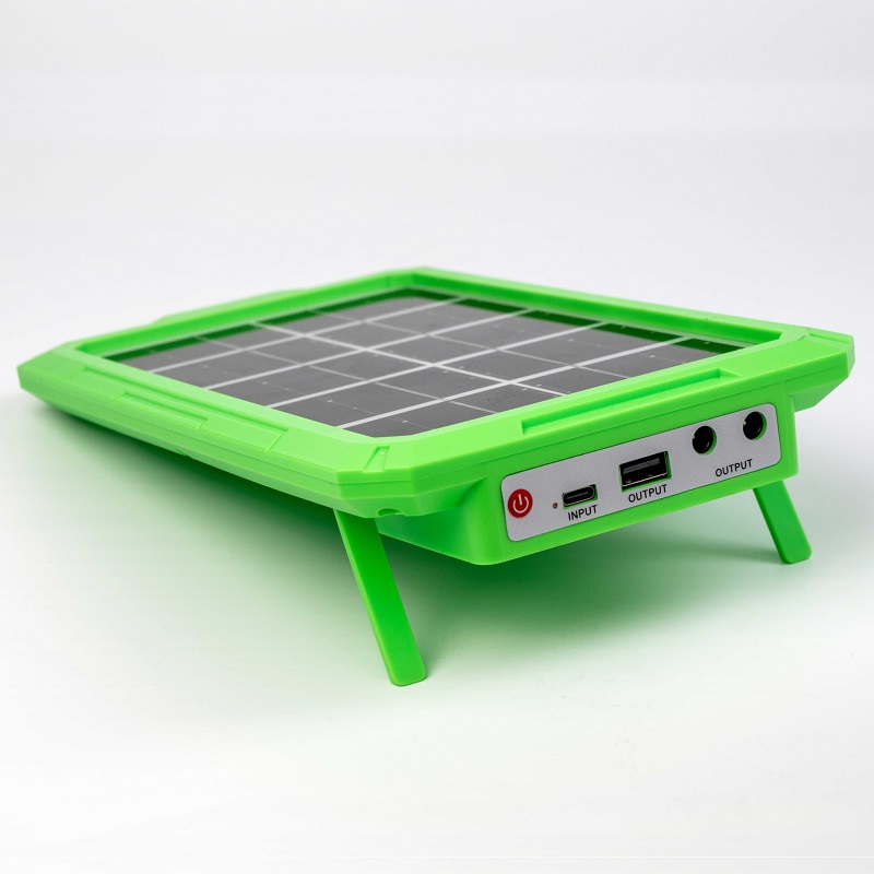 باطری های داخلی این دستگاه با پنل خورشیدی و یا برق شهری شارژ می شود و با دو عدد لامپ فضای مورد نظر را روشن می کند و دارای خروجی USB برای شارژ گوشی و سایر دستگاه ها می باشد