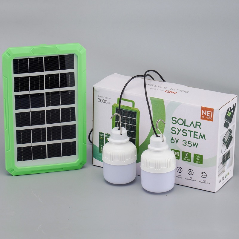 پک روشنایی اضطراری خورشیدی HL-S60 با دولامپ و خروجی شارژ موبایل