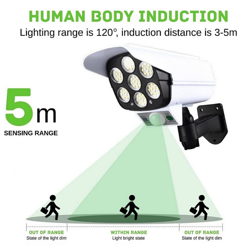 چراغ سنسور دار خورشیدی دارای قابی به شکل دوربین مدار بسته می باشد که از پلاستیک ABS ساخته شده است. متریال مناسب و قاب خوش ساخت موجب شده مقاومت این چراغ افزایش یابد و امکان استفاده از آن در محیط های بیرونی نیز فراهم باشد.