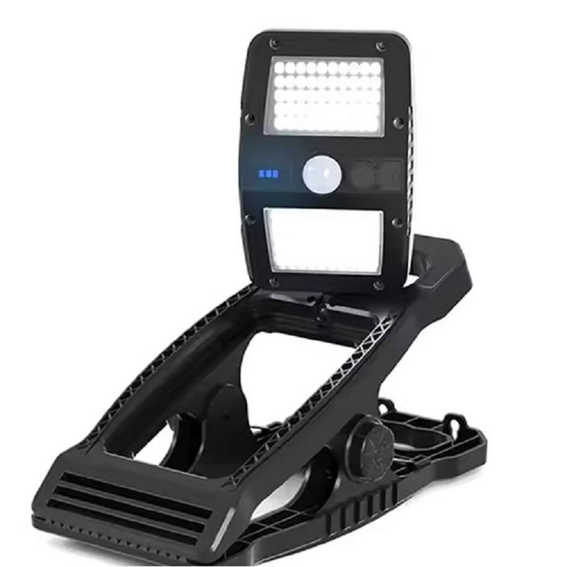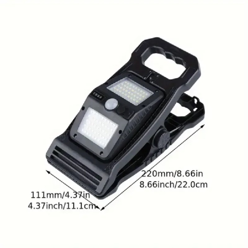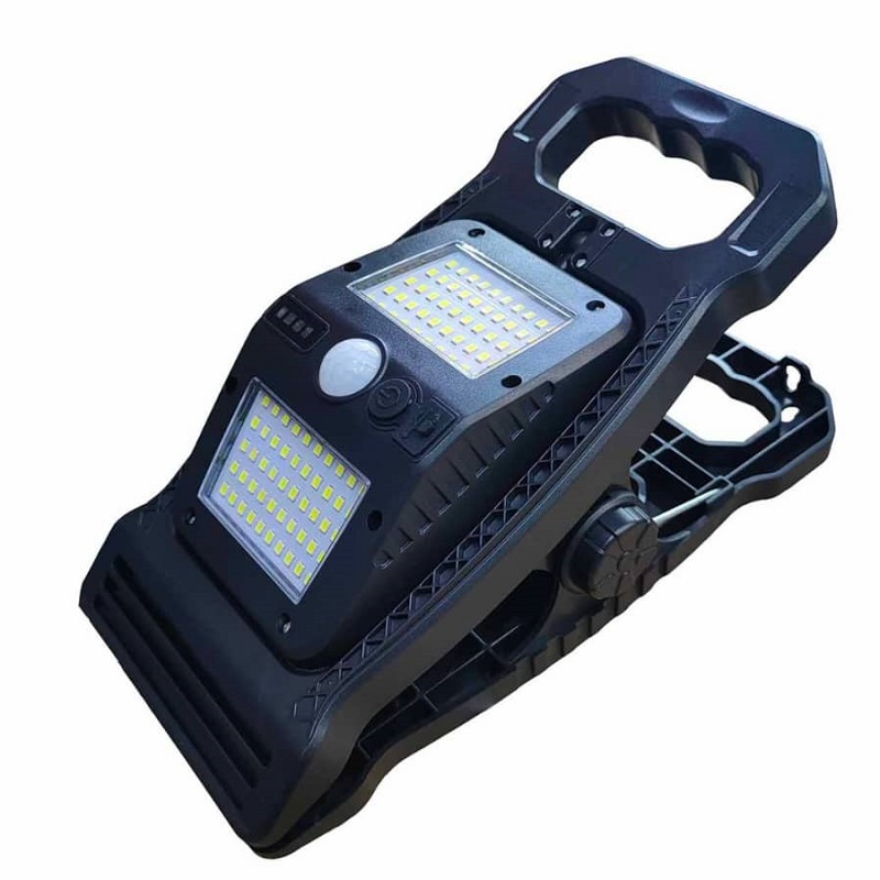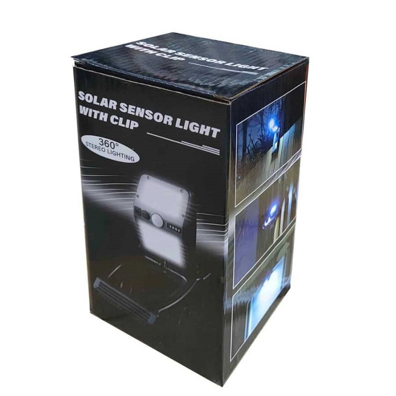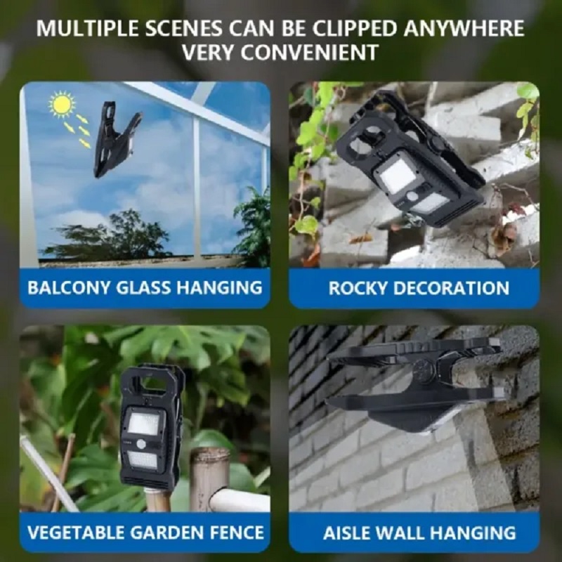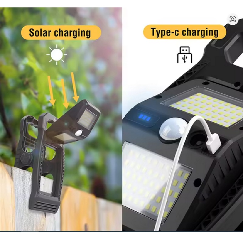 چراغ دیوارکوب شارژی خورشیدی گیره دار 360 درجه سنسوردار از چراغ های دارای باتری داخلی، قابل شارژ با برق شهری و قابل شارژ با نور خورشید است.